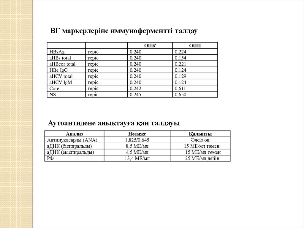 ВГ маркерлеріне иммуноферментті талдауОПК