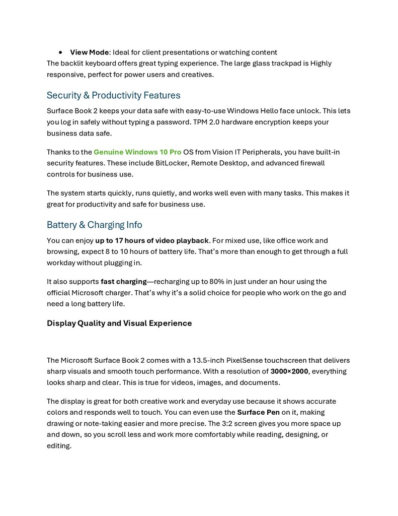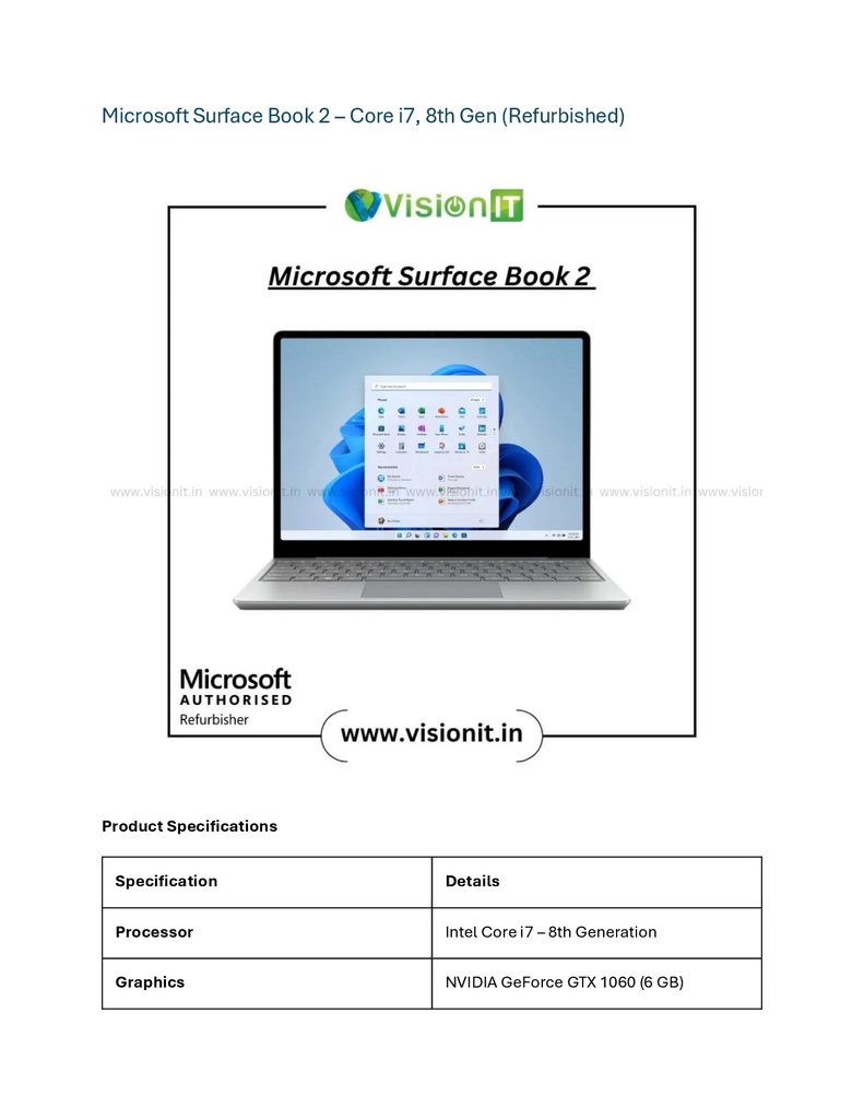 Microsoft Surface Book 2 – Core i7, 8th Gen (Refurbished)Product Specifications