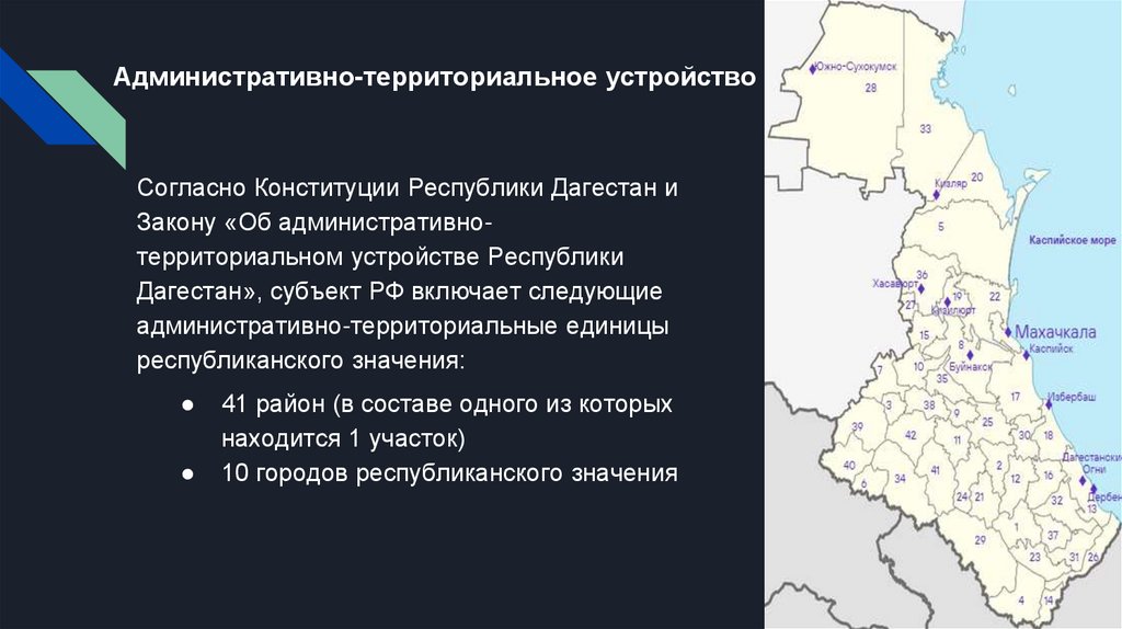 Административно-территориальное устройствоСогласно Конституции Республики Дагестан и