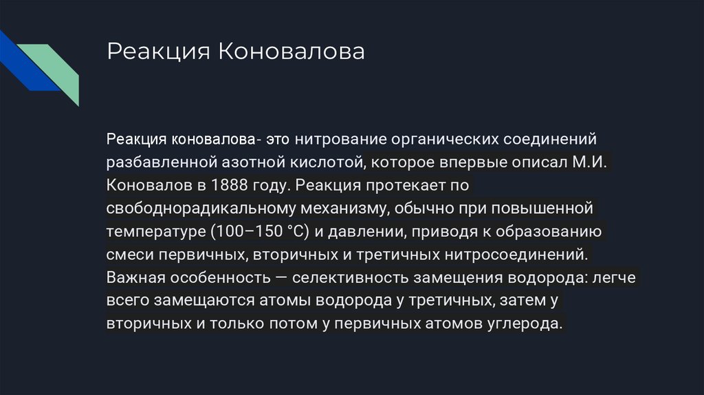 Реакция КоноваловаРеакция коновалова- это нитрование органических соединений