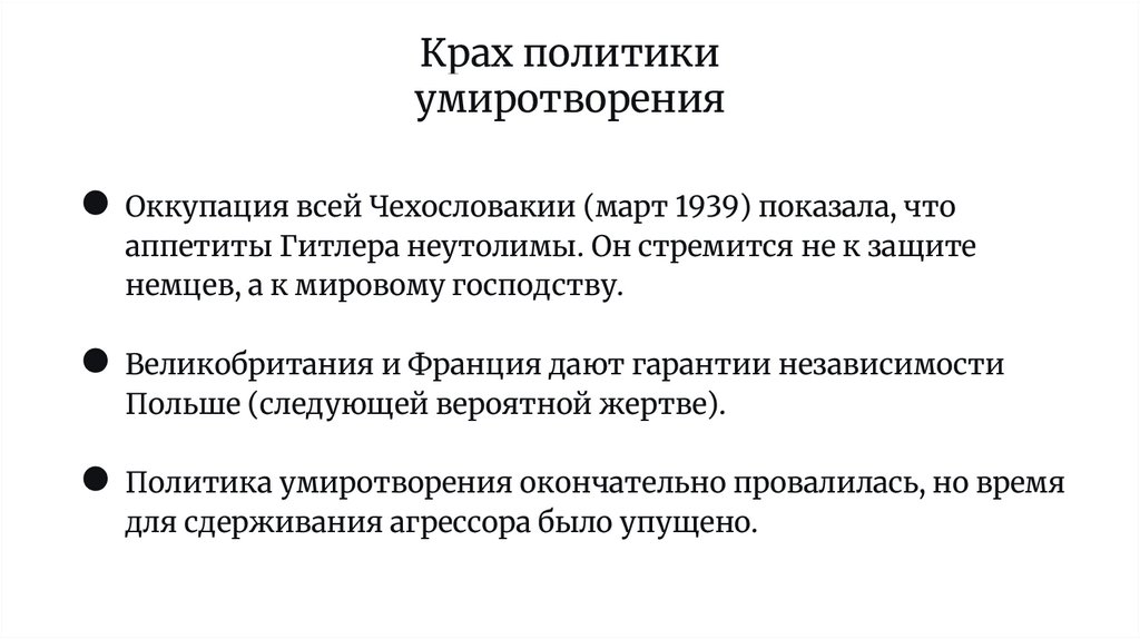 ● Война стала неизбежной, когда Гитлер убедился в слабости и