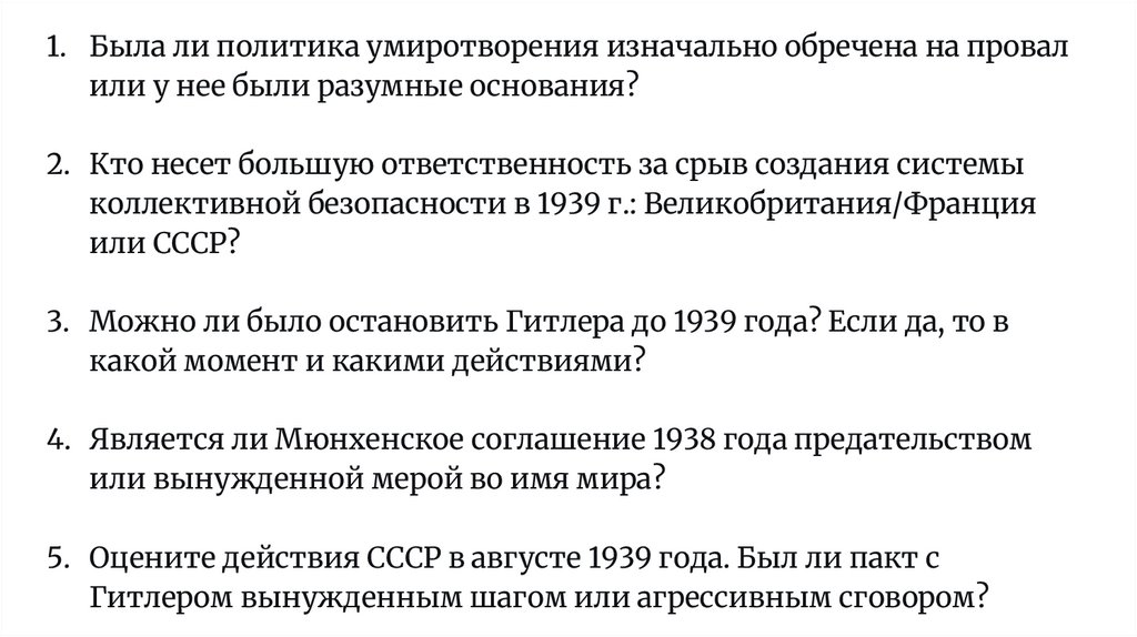 1. Была ли политика умиротворения изначально обречена на провалили у нее были разумные основания?