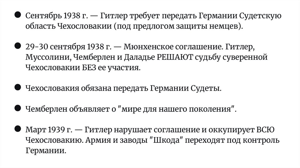 ● Март 1939 г. — Гитлер нарушает соглашение и оккупирует ВСЮ