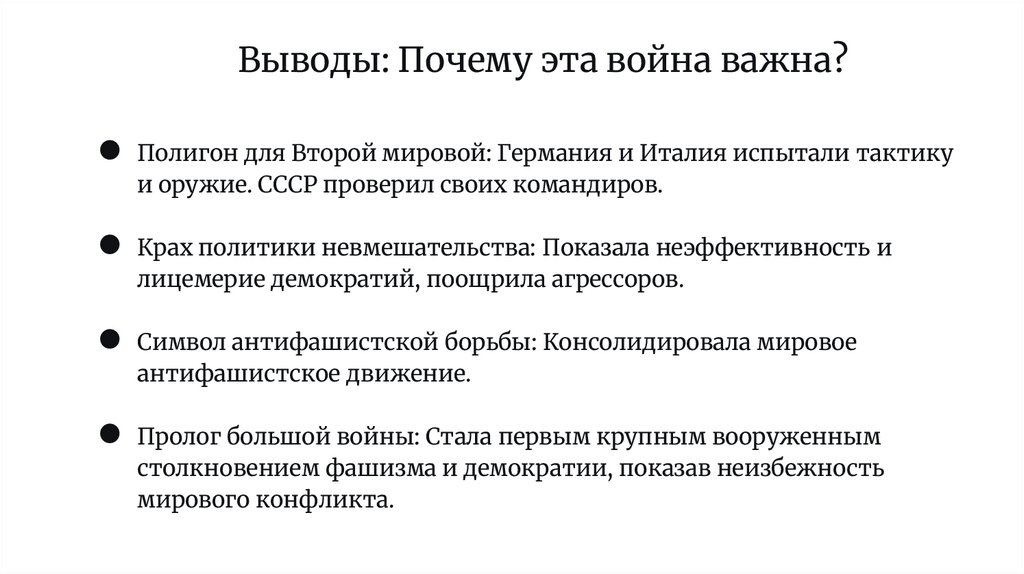 Выводы: Почему эта война важна?● Полигон для Второй мировой: Германия и Италия испытали тактику