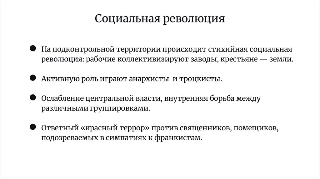 Социальная революция● На подконтрольной территории происходит стихийная социальная