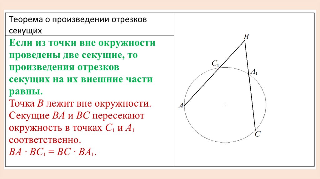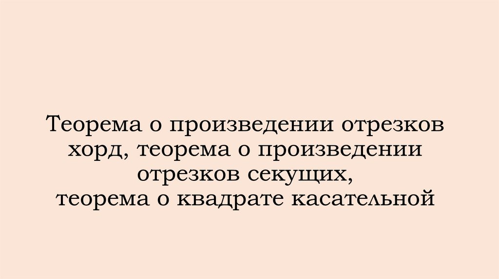 1. Теорема о произведении отрезков хорд, теорема о произведении отрезков секущих, теорема о квадрате касательной