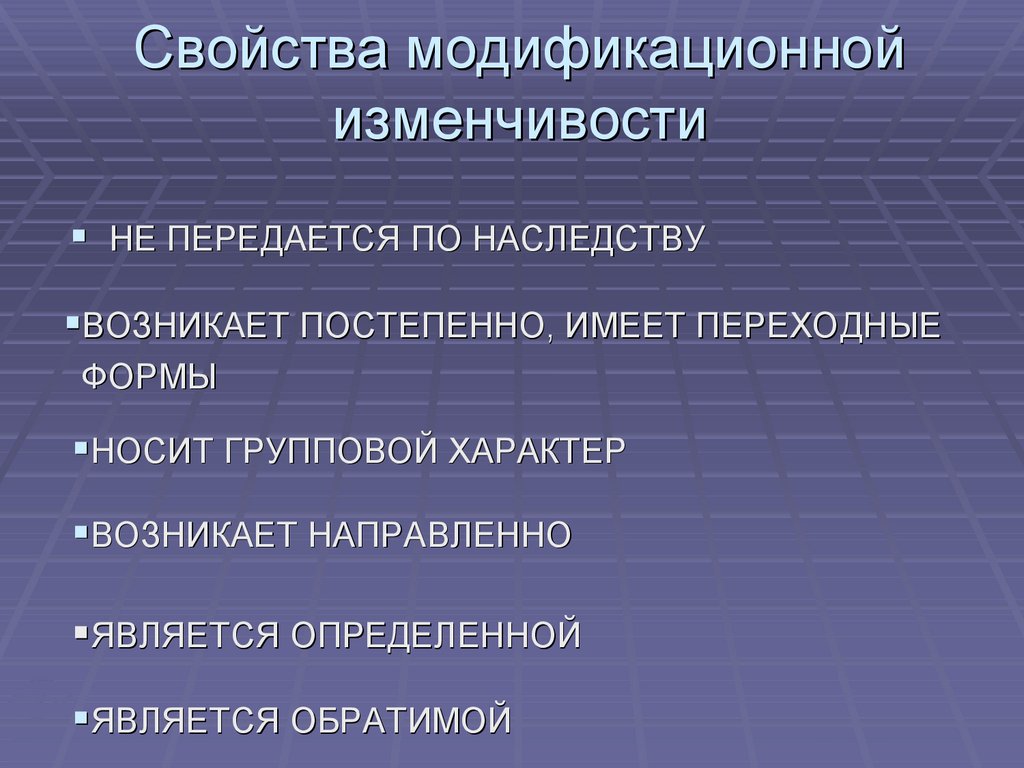 Свойства модификационнойизменчивости