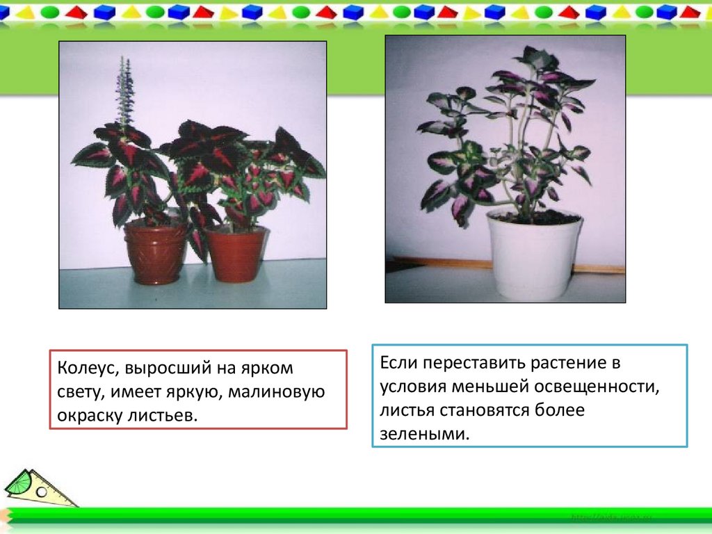 Колеус, выросший на яркомсвету, имеет яркую, малиновую