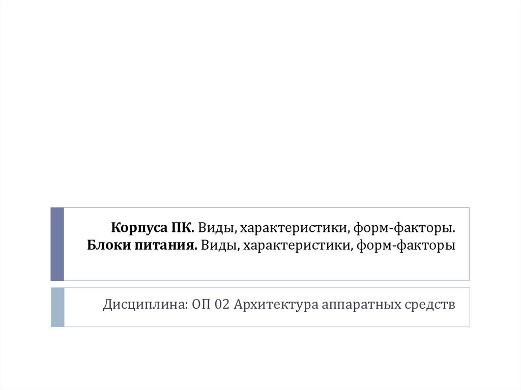Корпуса ПК. Виды, характеристики, форм-факторы.Блоки питания. Виды, характеристики, форм-факторы