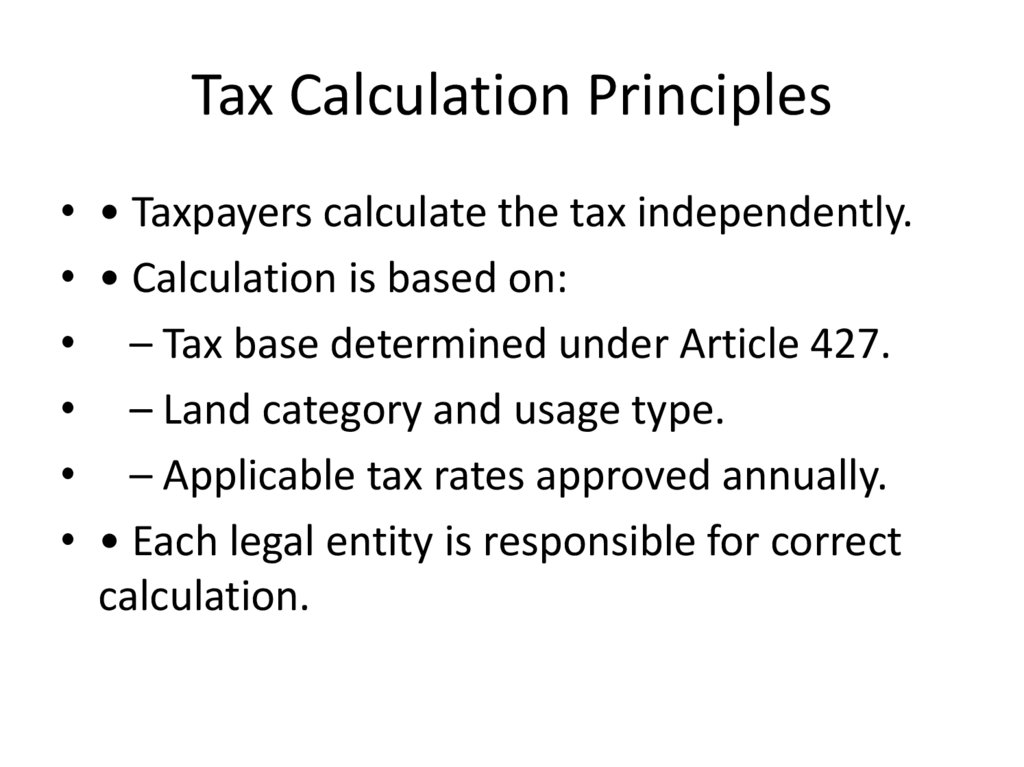 Tax Calculation Principles• • Taxpayers calculate the tax independently.