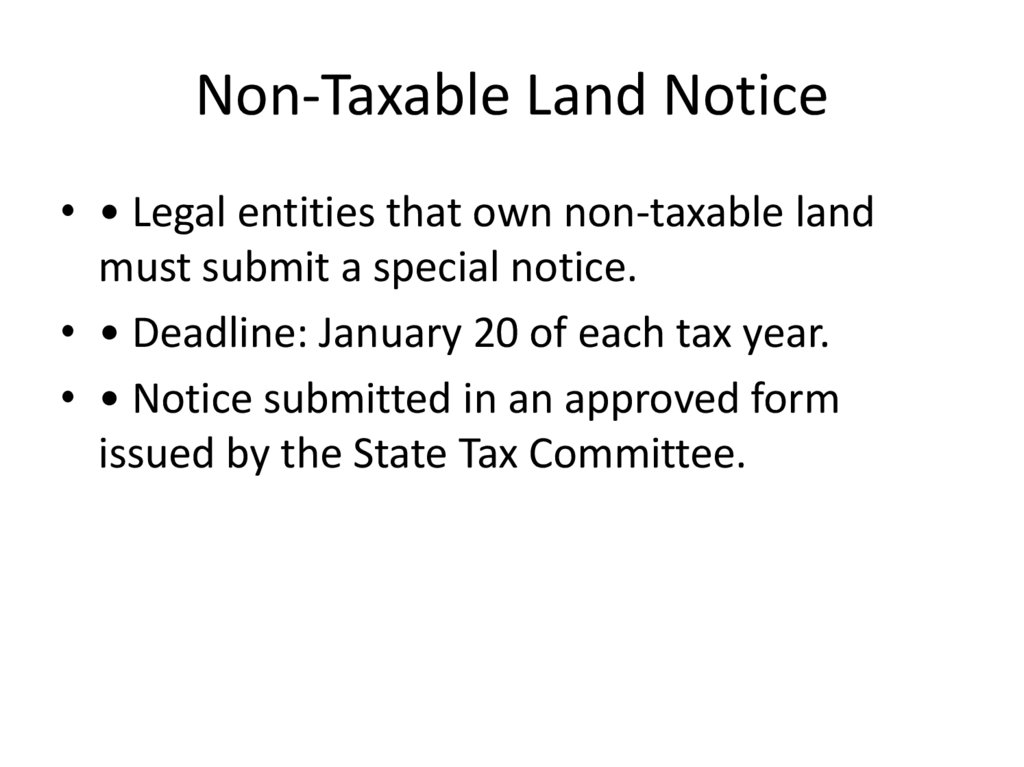 Non-Taxable Land Notice• • Legal entities that own non-taxable land