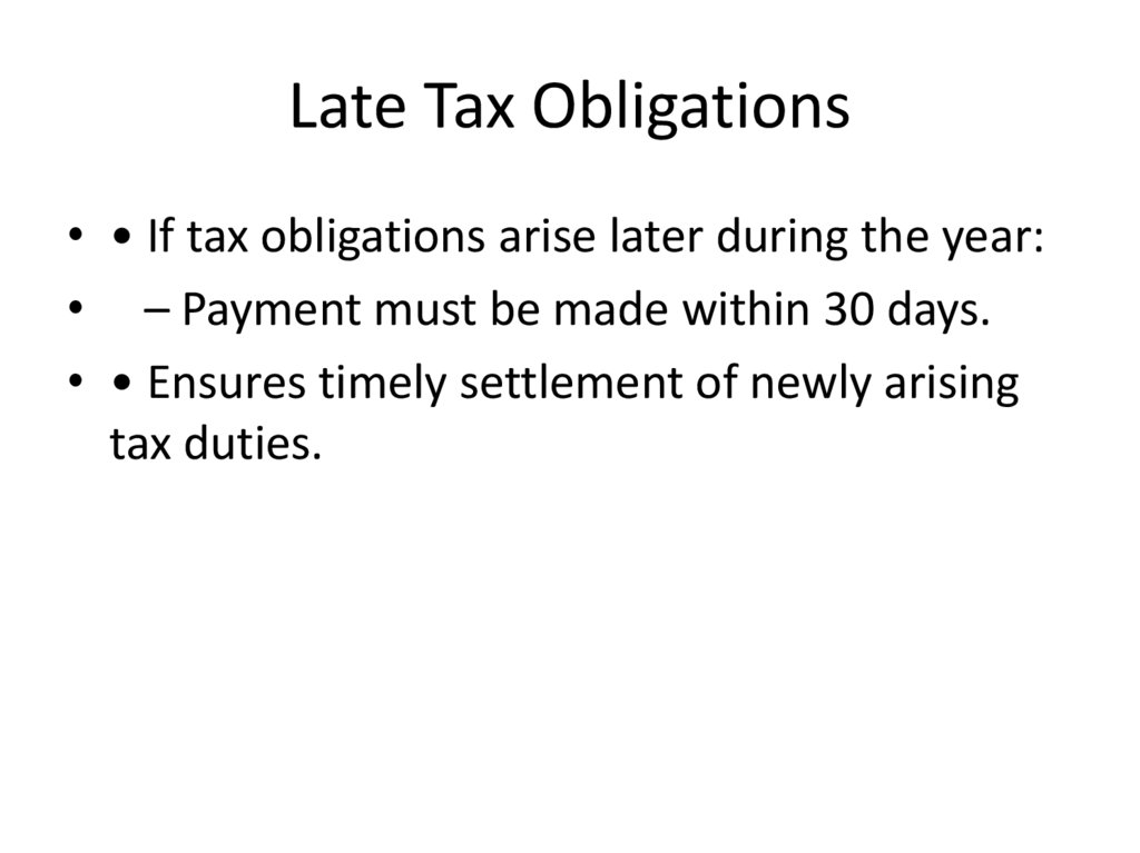 Late Tax Obligations• • If tax obligations arise later during the year: