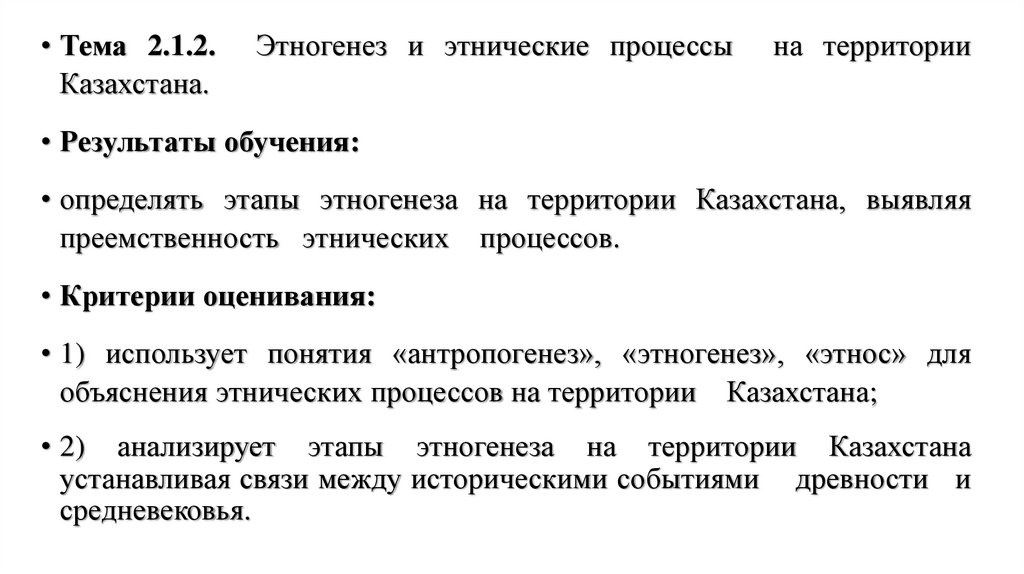 • 2) анализирует этапы этногенеза на территории Казахстана