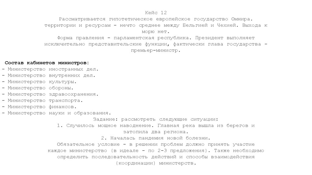 Кейс 12Рассматривается гипотетическое европейское государство Омнира.