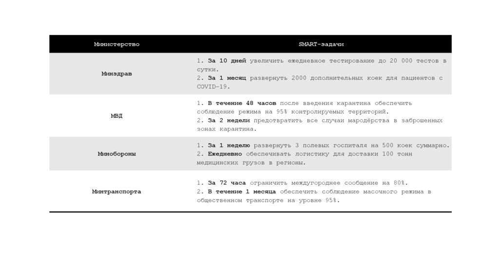 1. За 1 неделю развернуть 3 полевых госпиталя на 500 коек суммарно.