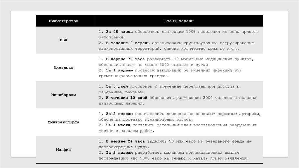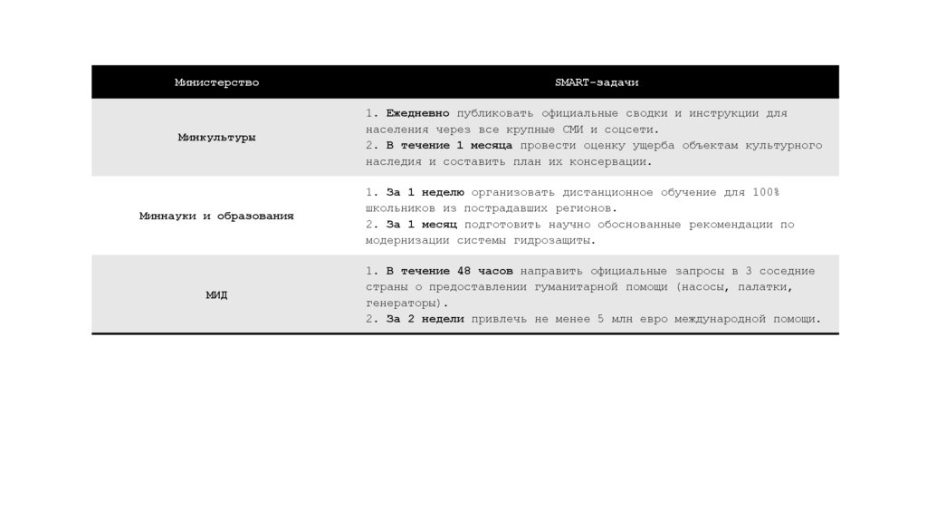 4. Ситуация1. Мощное наводнение. SMART цель.
