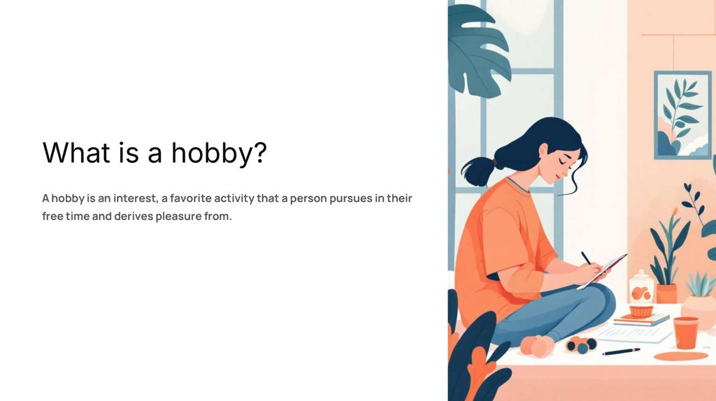 What is a hobby?A hobby is an interest, a favorite activity that a person pursues in their