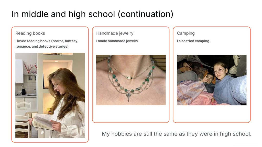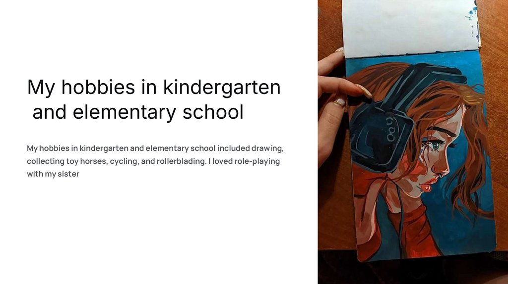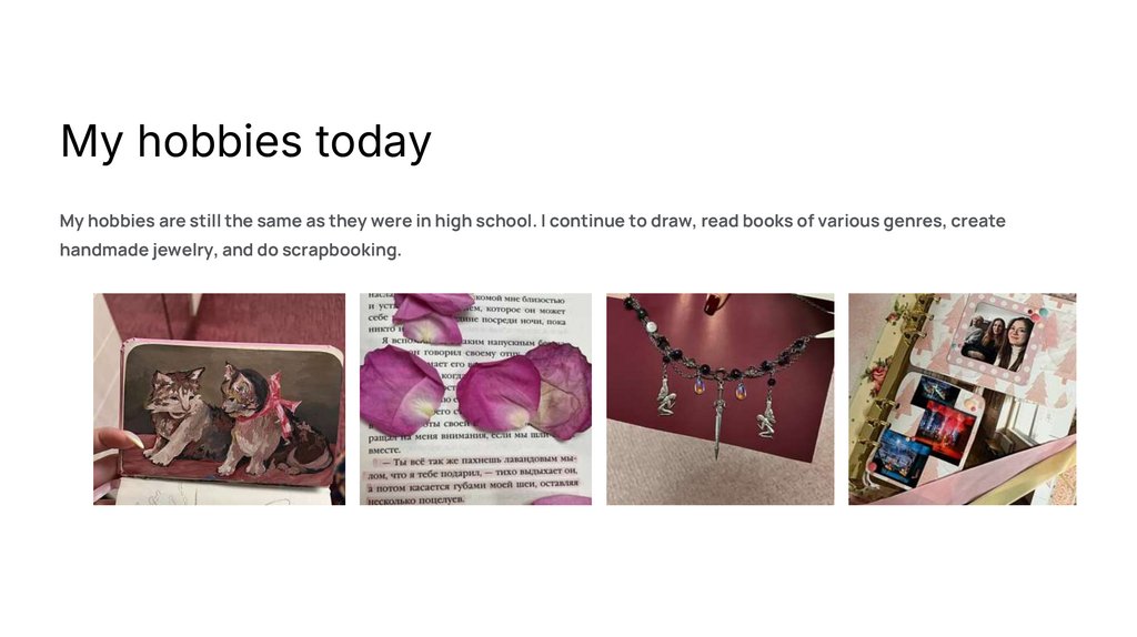 My hobbies todayMy hobbies are still the same as they were in high school. I continue to draw, read books of various genres, create
