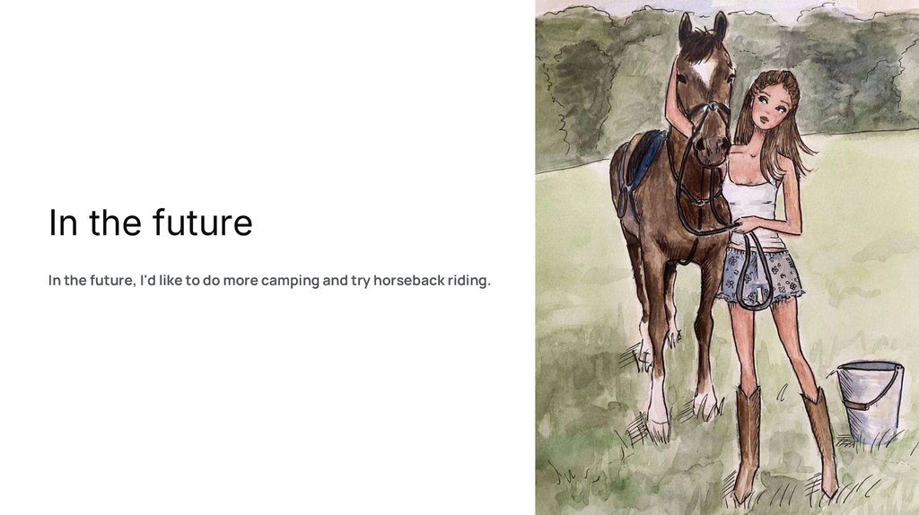 In the futureIn the future, I'd like to do more camping and try horseback riding.