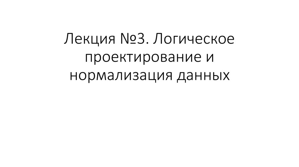 1. Лекция №3. Логическое проектирование и нормализация данных