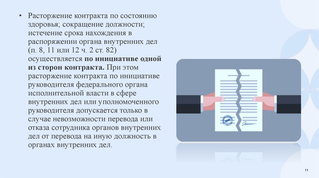 11. В связи с сокращением должности в органах внутренних дел, замещаемой сотрудником. При