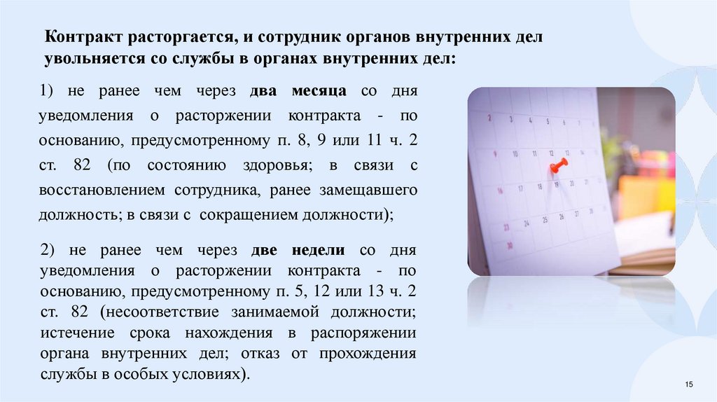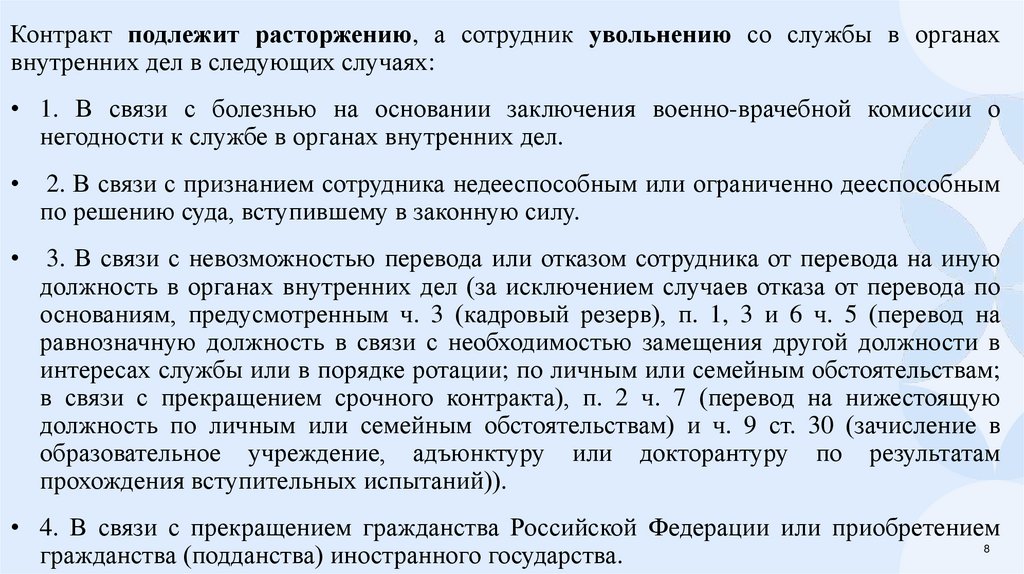 Контракт может быть расторгнут, а сотрудник органов внутреннихдел может быть уволен со службы в органах внутренних дел: