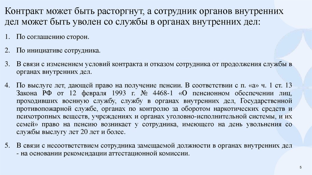 5. В связи с несоответствием сотрудника замещаемой должности в органах внутренних дел