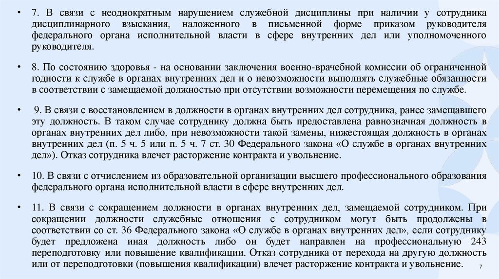 7. В связи с неоднократным нарушением служебной дисциплины при наличии у сотрудника