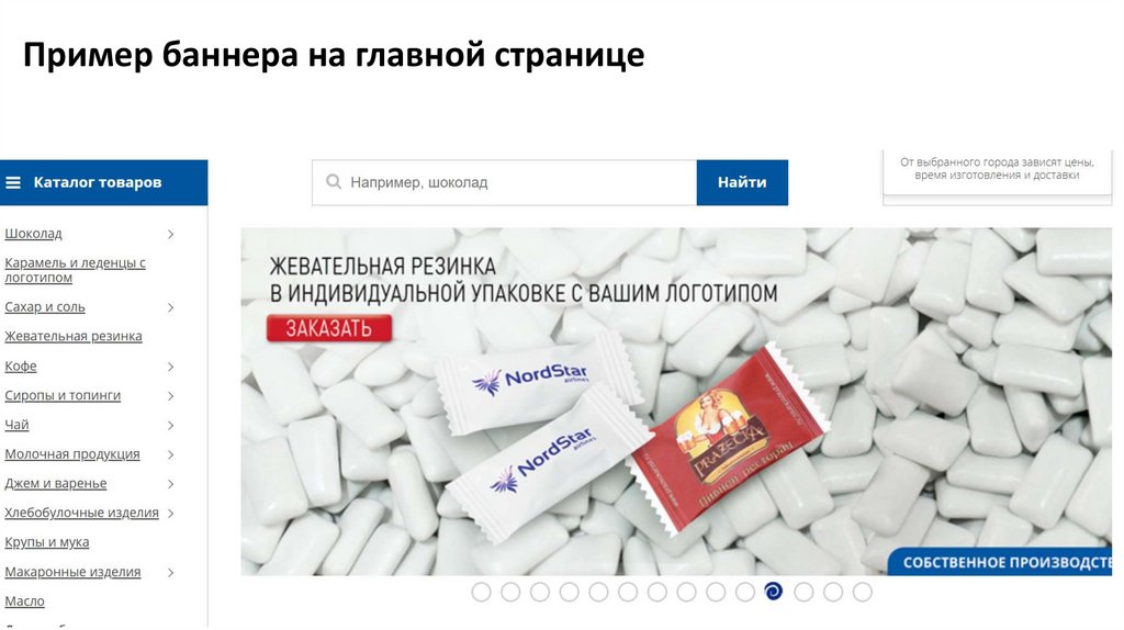 Создать рекламный баннер Dirol для главной страницы сайта компании Росшоколад (ведущий