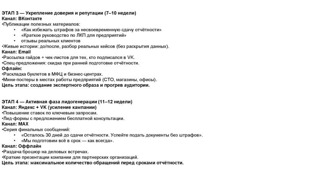 ЭТАП 4 — Активная фаза лидогенерации (11–12 недели)