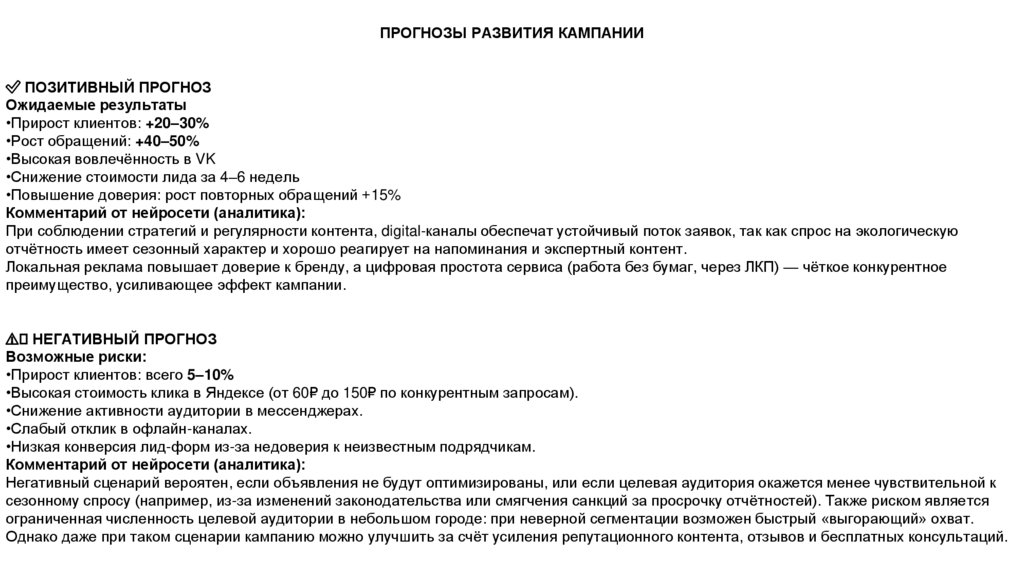 Негативный сценарий вероятен, если объявления не будут оптимизированы, или если целевая аудитория окажется менее чувствительной к