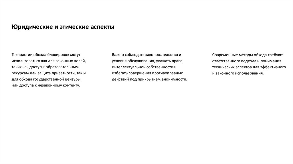 Юридические и этические аспектыТехнологии обхода блокировок могут