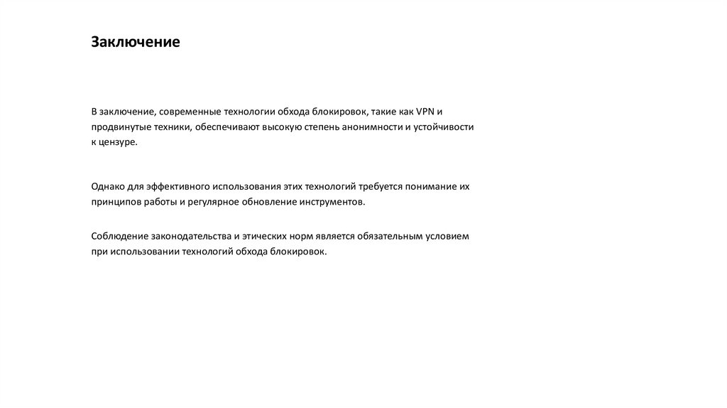 ЗаключениеВ заключение, современные технологии обхода блокировок, такие как VPN и