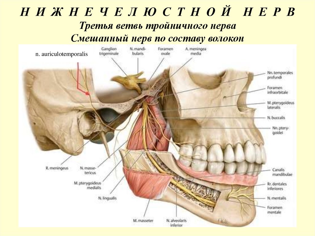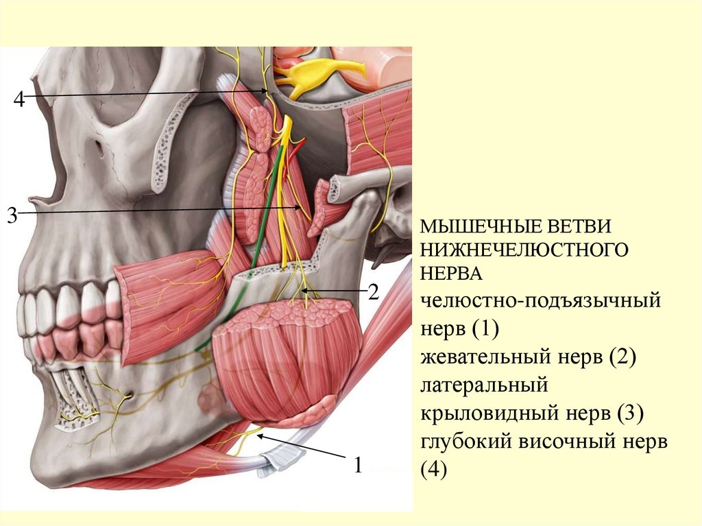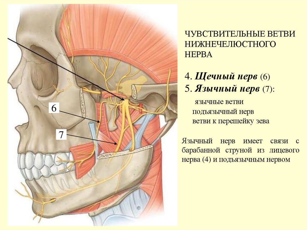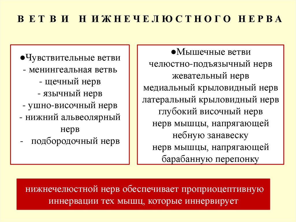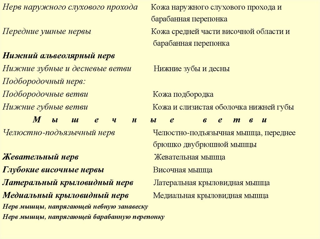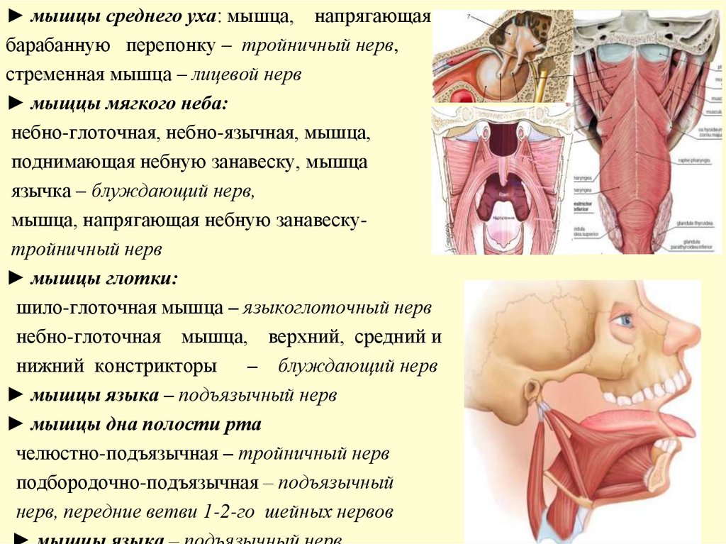 ► мышцы среднего уха: мышца, напрягающаябарабанную перепонку – тройничный нерв,