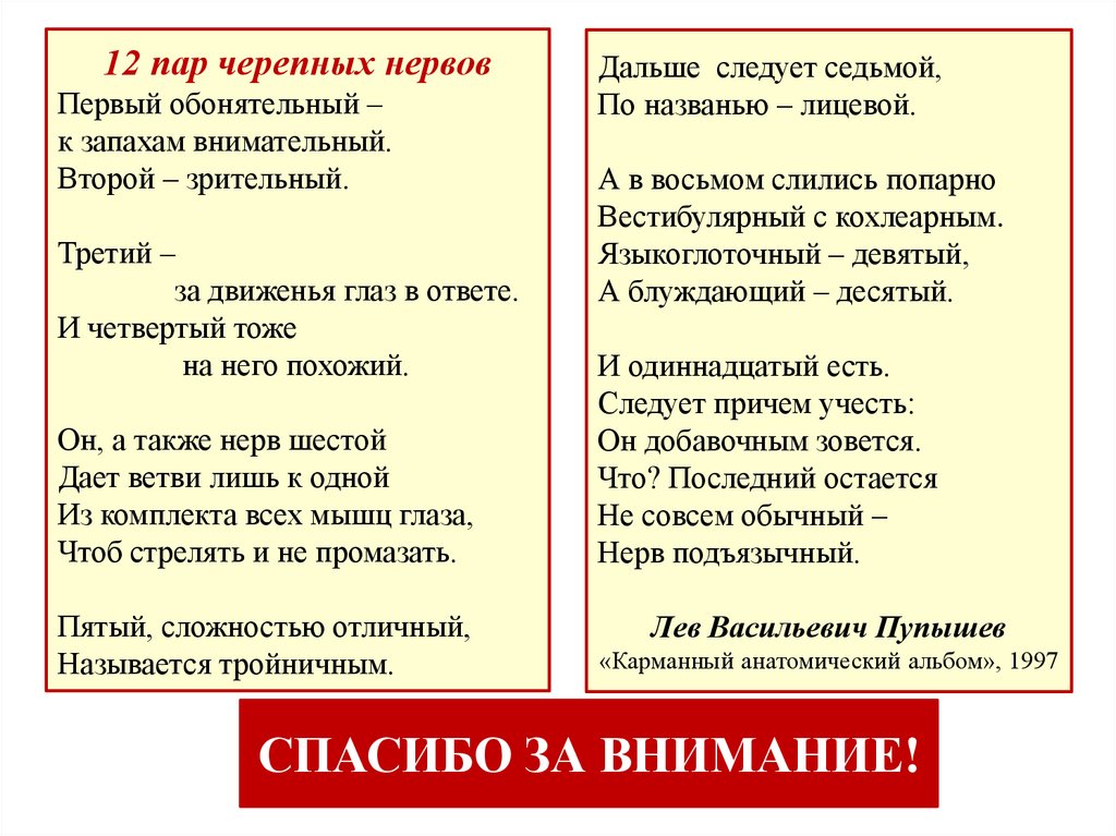 2. План лекции 1. Название 12 пар черепных нервов. 2. Отличия черепных нервов от спинномозговых. 3. Классификация черепных нервов.