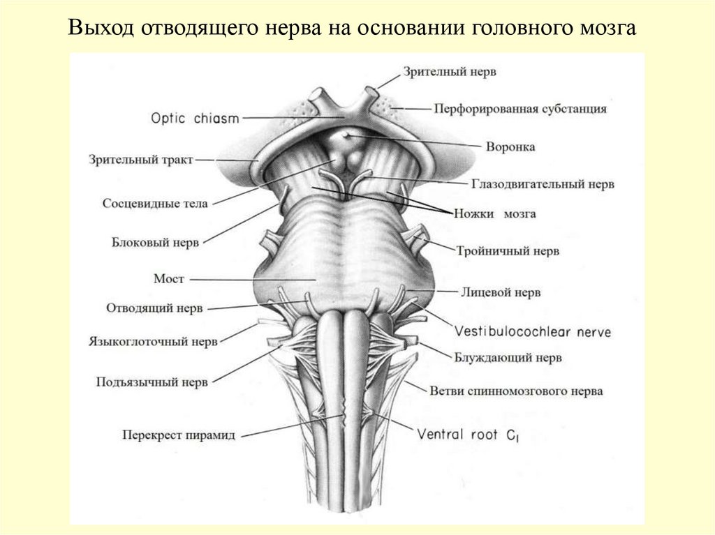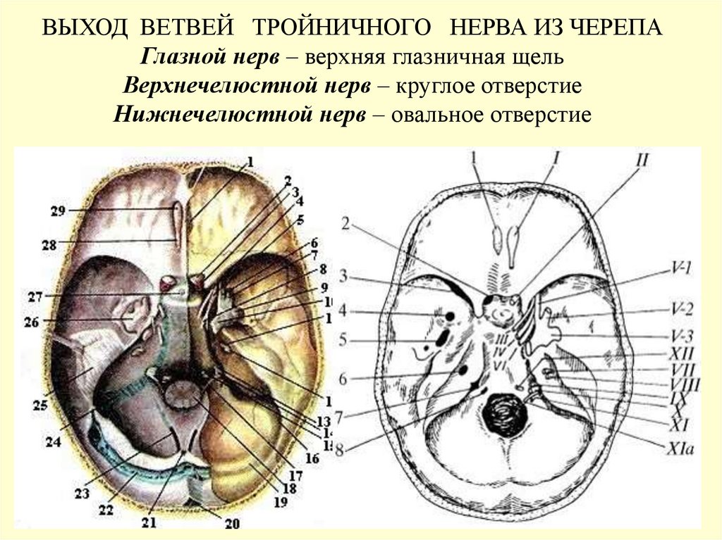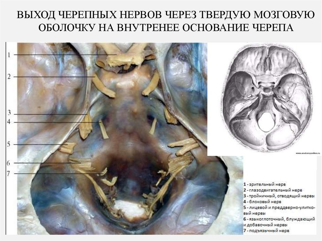 ВЫХОД ЧЕРЕПНЫХ НЕРВОВ ЧЕРЕЗ ТВЕРДУЮ МОЗГОВУЮОБОЛОЧКУ НА ВНУТРЕНЕЕ ОСНОВАНИЕ ЧЕРЕПА