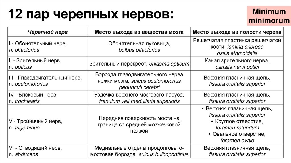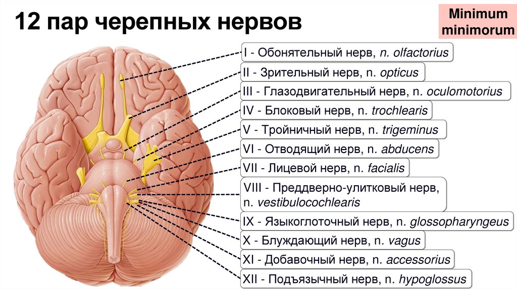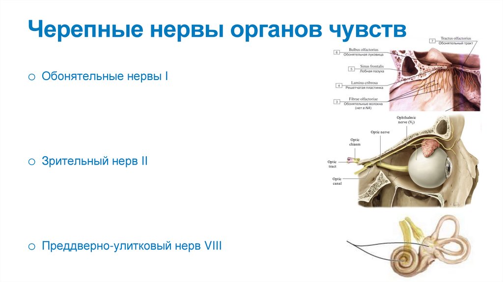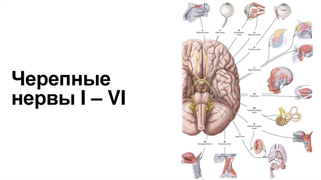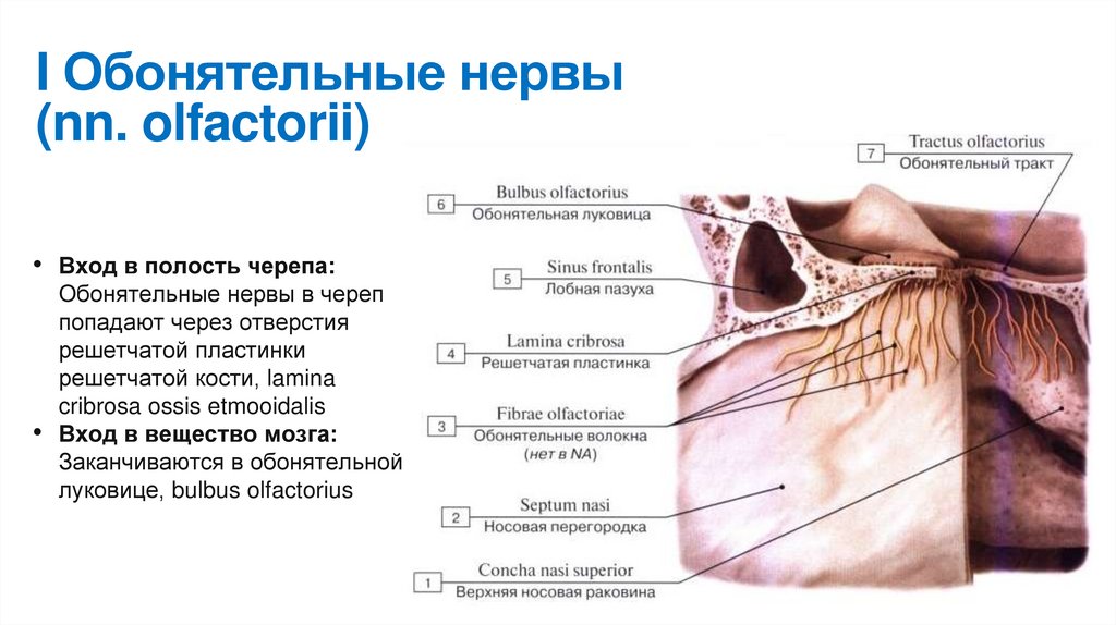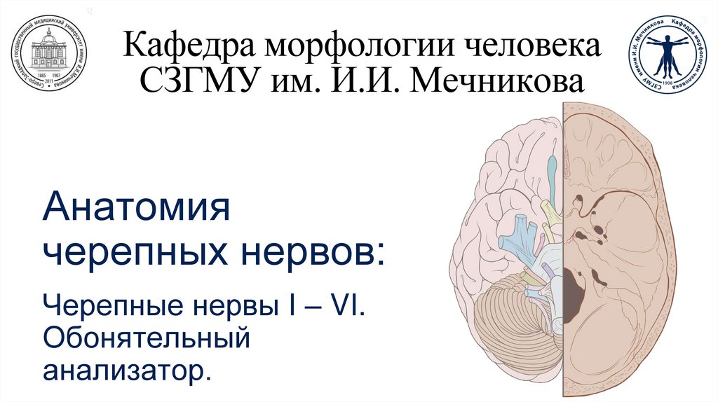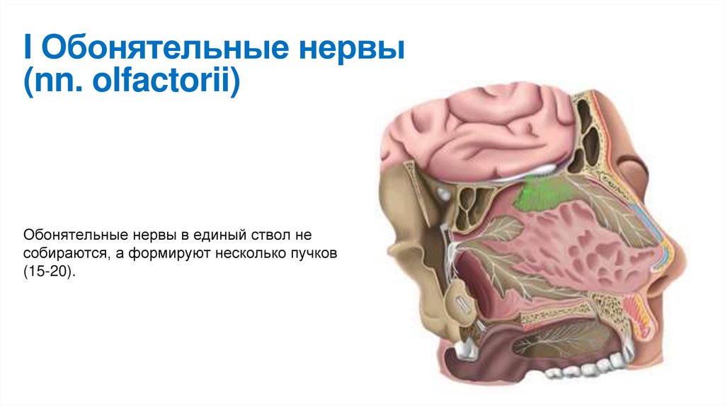 • Общий обзор черепных нервов.• Обонятельный нерв (I ЧН). Проводящий путь и корковый конец обонятельного
