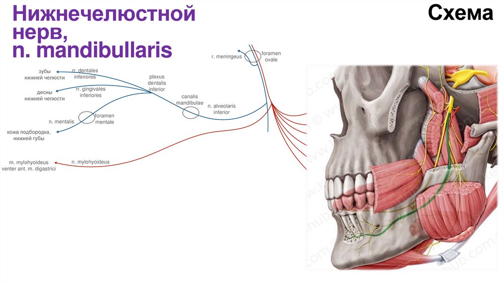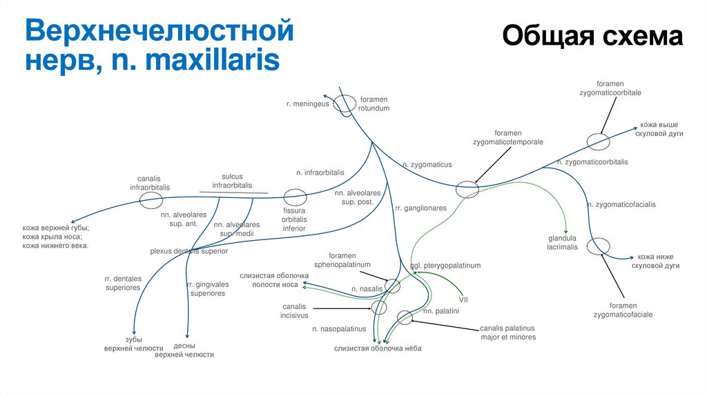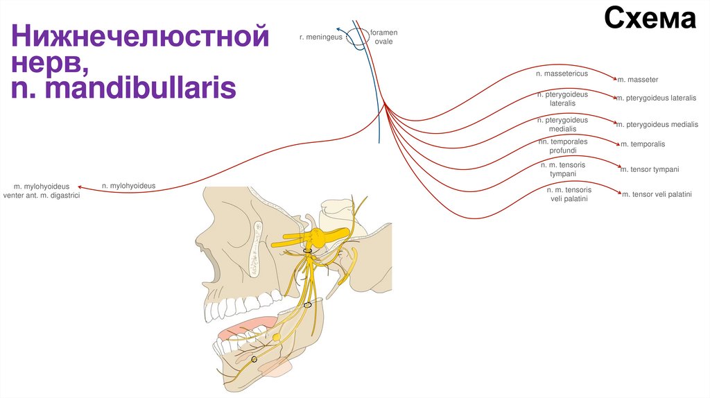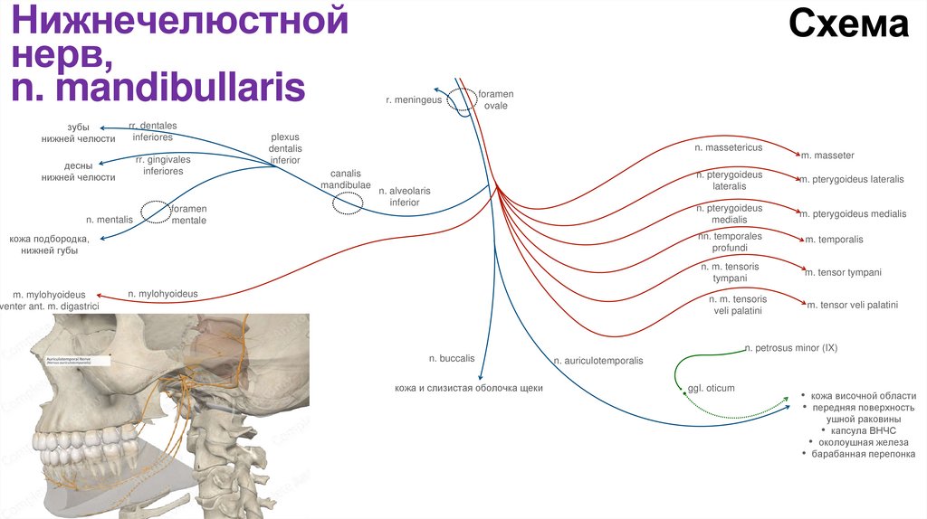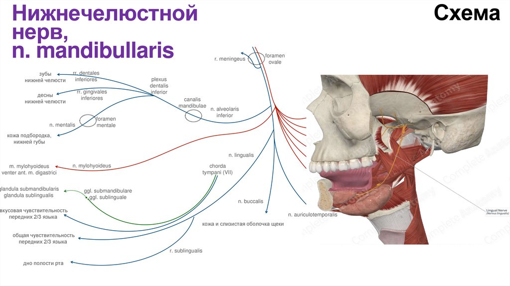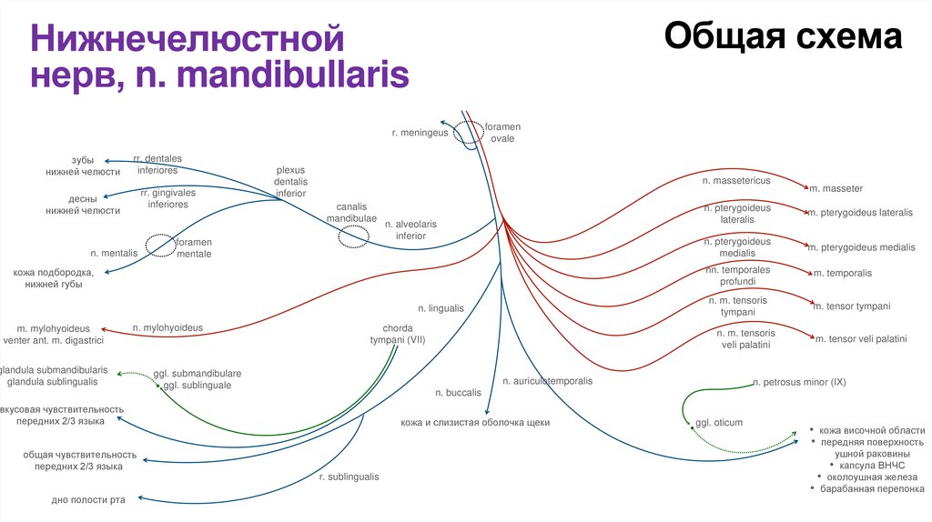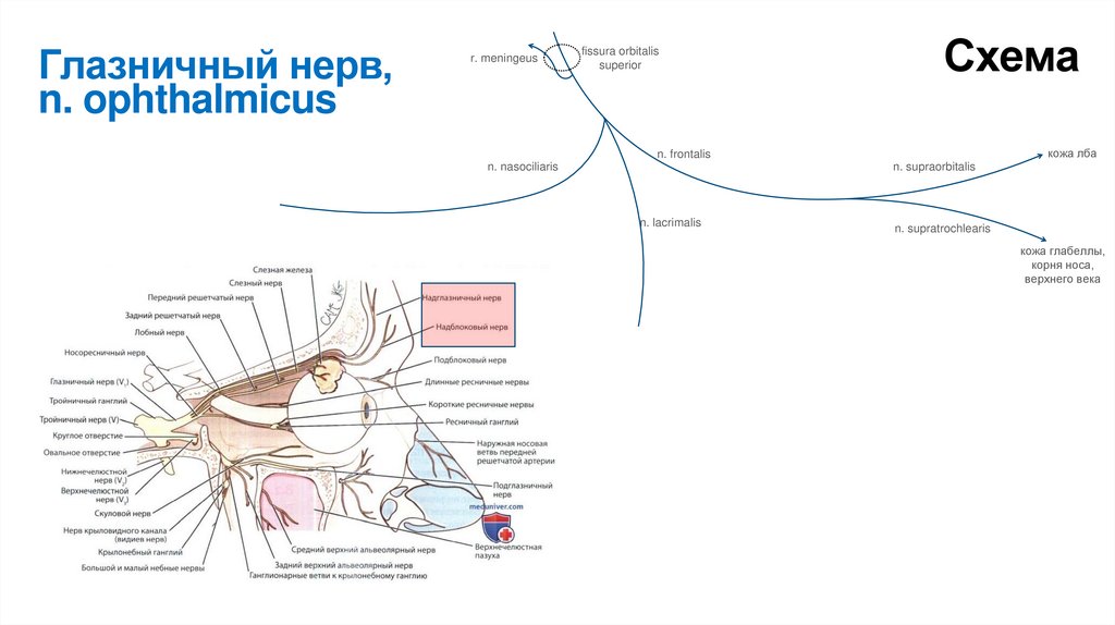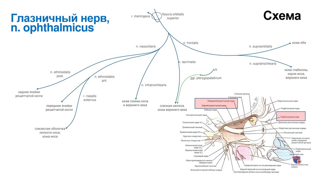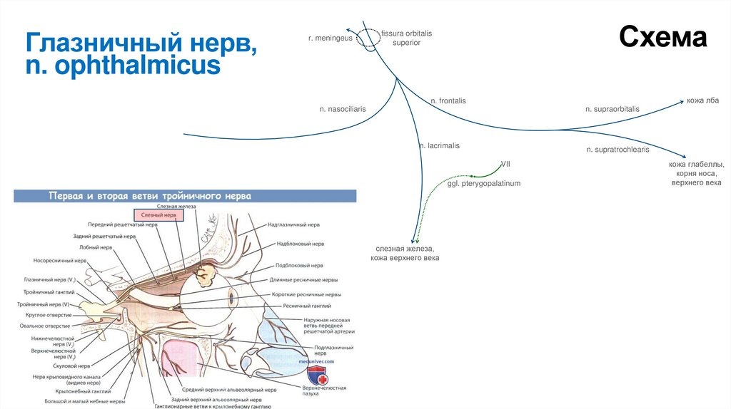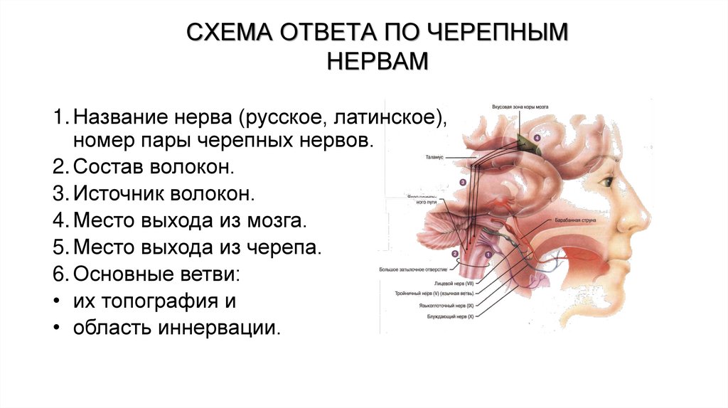 положение на основании мозга и в черепе, ветви и области иннервации.
