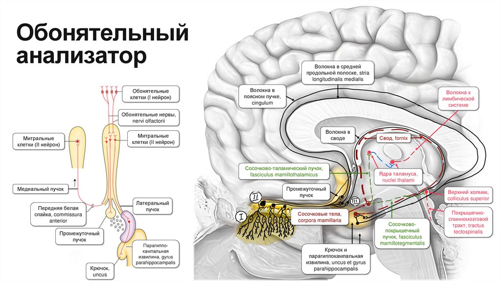 • Обонятельный нерв [I]. Проводящий путь и корковый конец обонятельногоанализатора.