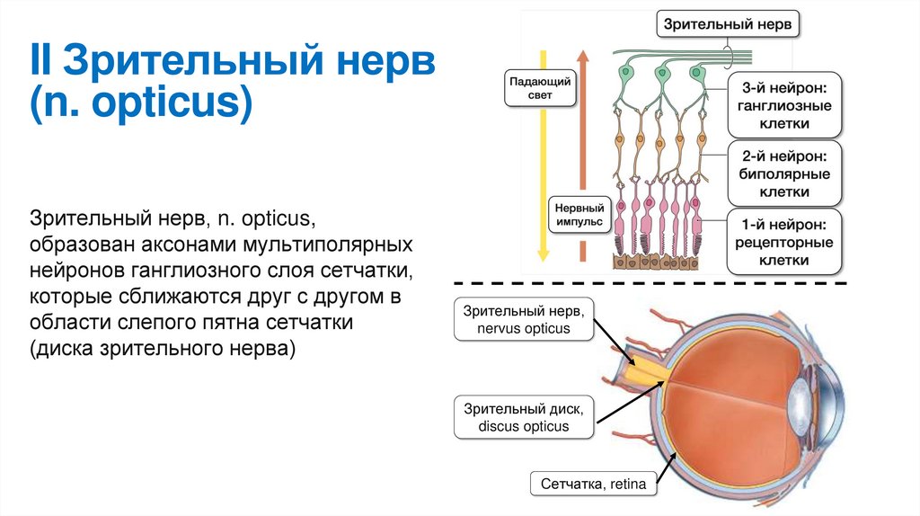 • Зрительный нерв (II ЧН), корковый конец зрительного анализатора. Проводящий путь