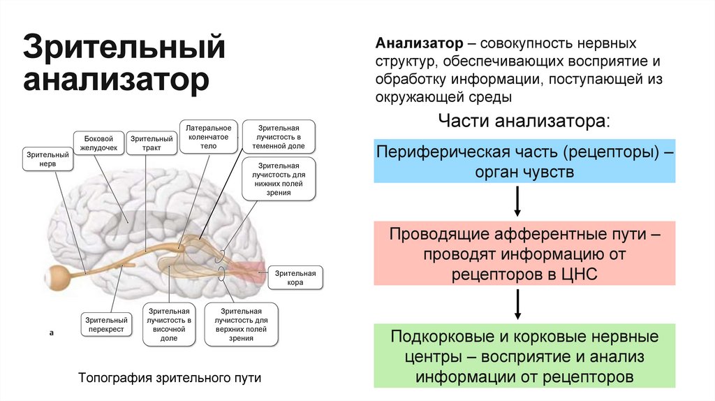 • Зрительный нерв [II], корковый конец зрительного анализатора.