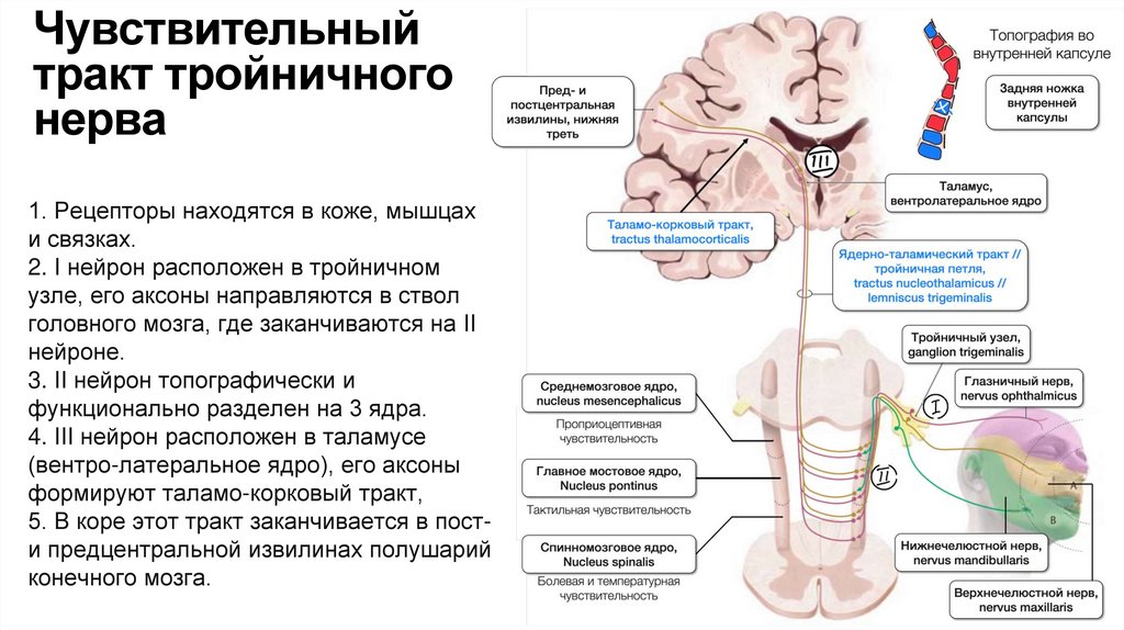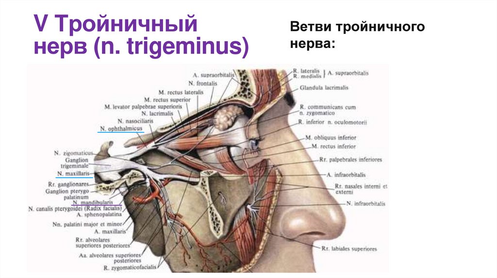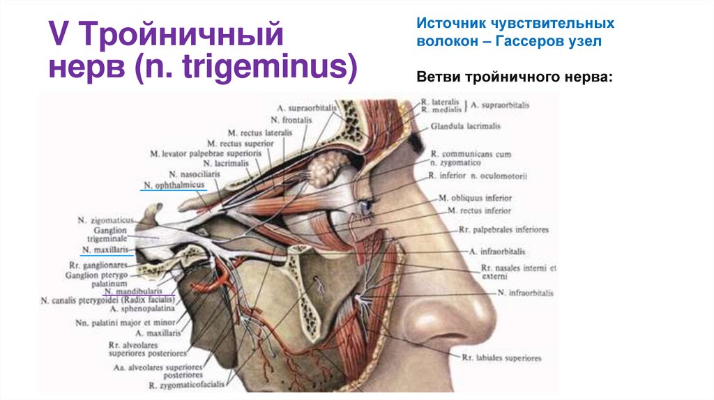• Тройничный нерв [V]: состав волокон, источники их формирования,