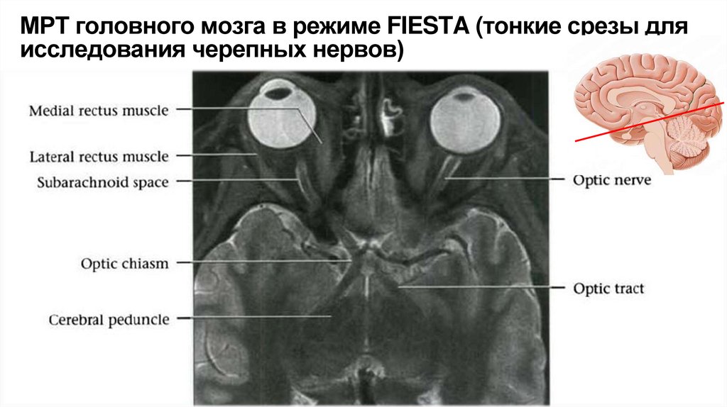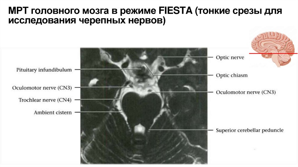 МРТ головного мозга в режиме FIESTA (тонкие срезы дляисследования черепных нервов)