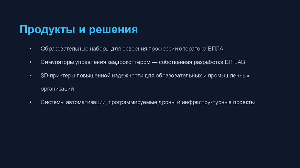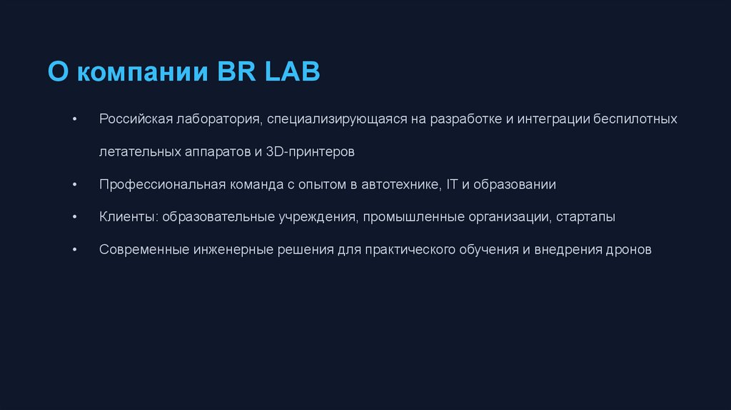 О компании BR LABРоссийская лаборатория, специализирующаяся на разработке и интеграции беспилотных