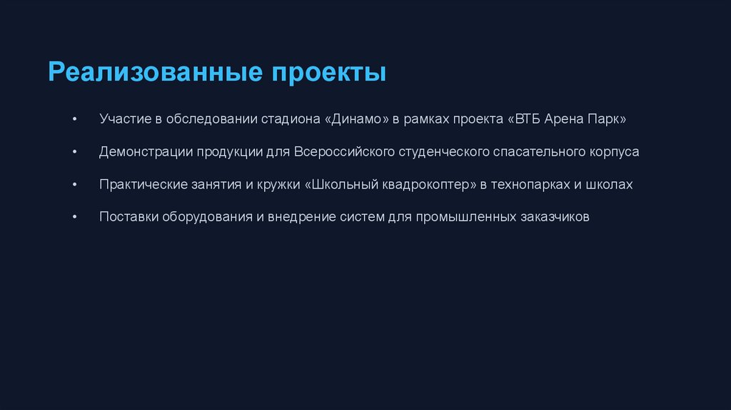 Основные услугиСоздание образовательных комплектов БПЛА и симуляторов для школ и технопарков