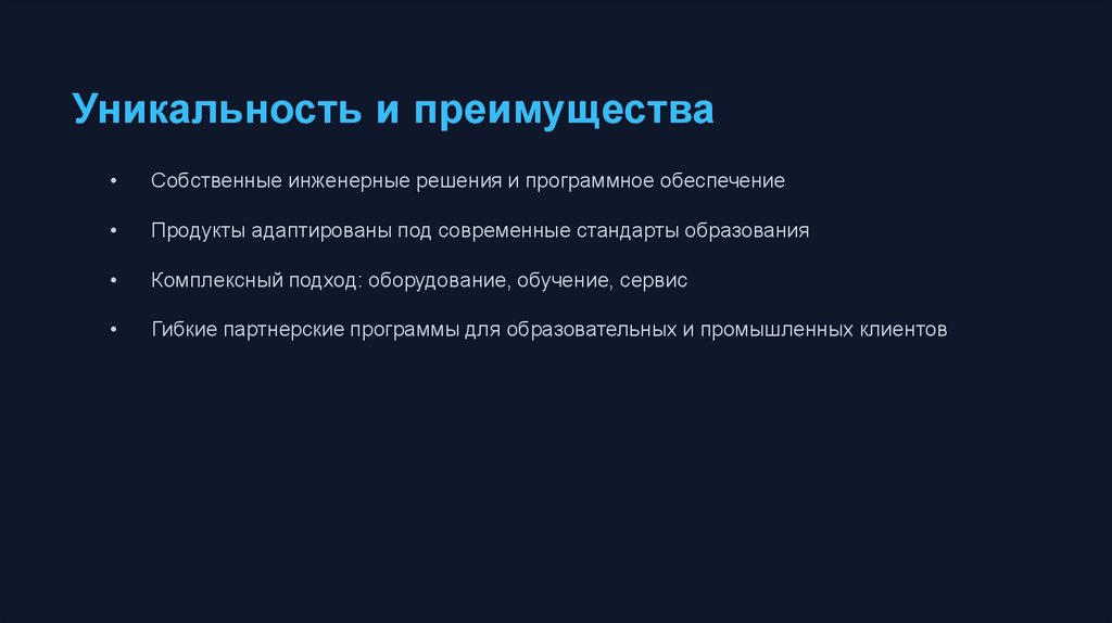 Уникальность и преимуществаСобственные инженерные решения и программное обеспечение