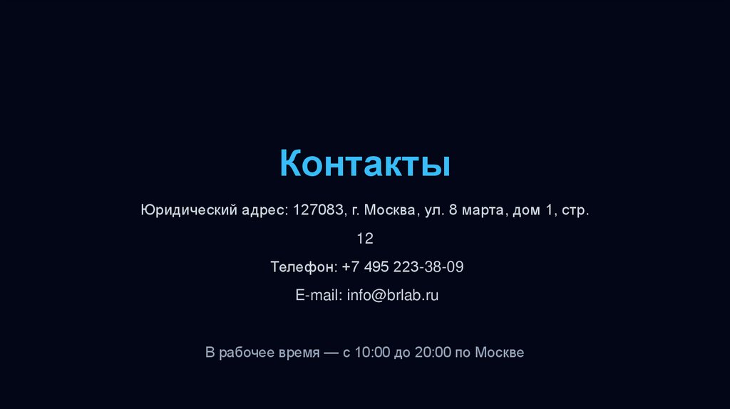 КонтактыЮридический адрес: 127083, г. Москва, ул. 8 марта, дом 1, стр.