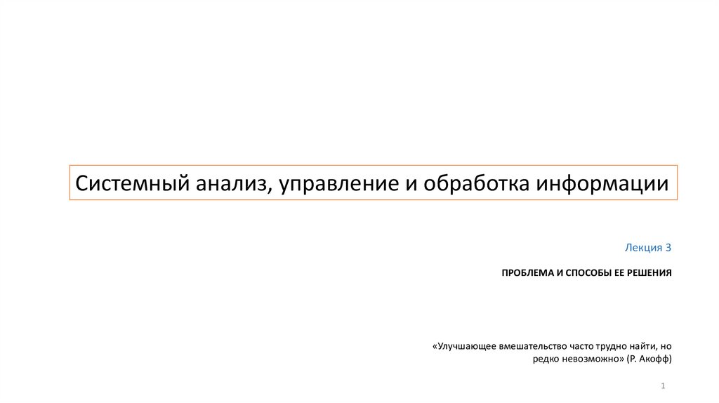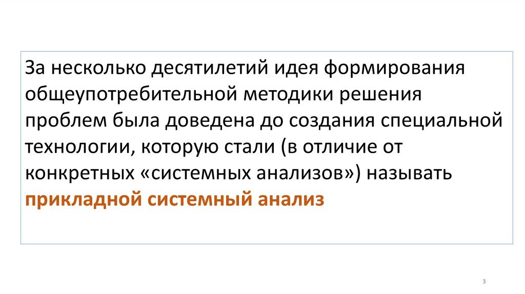 Особенности прикладного системного анализаВ прошлом был момент О когда проблемы вообще не было.