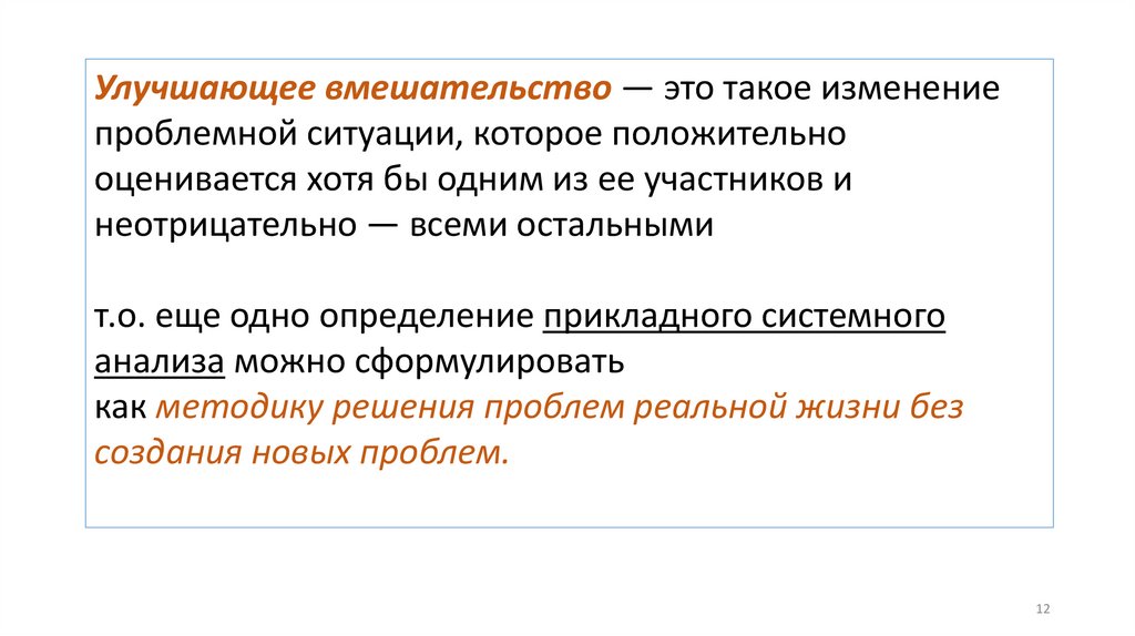 Улучшающее вмешательство — это такое изменениепроблемной ситуации, которое положительно