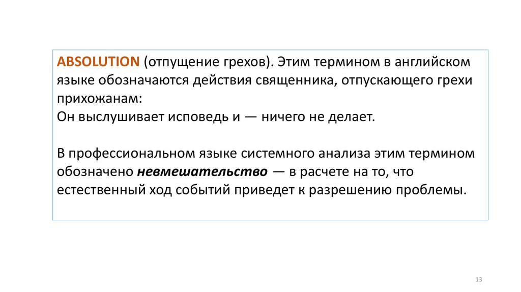 ABSOLUTION (отпущение грехов). Этим термином в английскомязыке обозначаются действия священника, отпускающего грехи